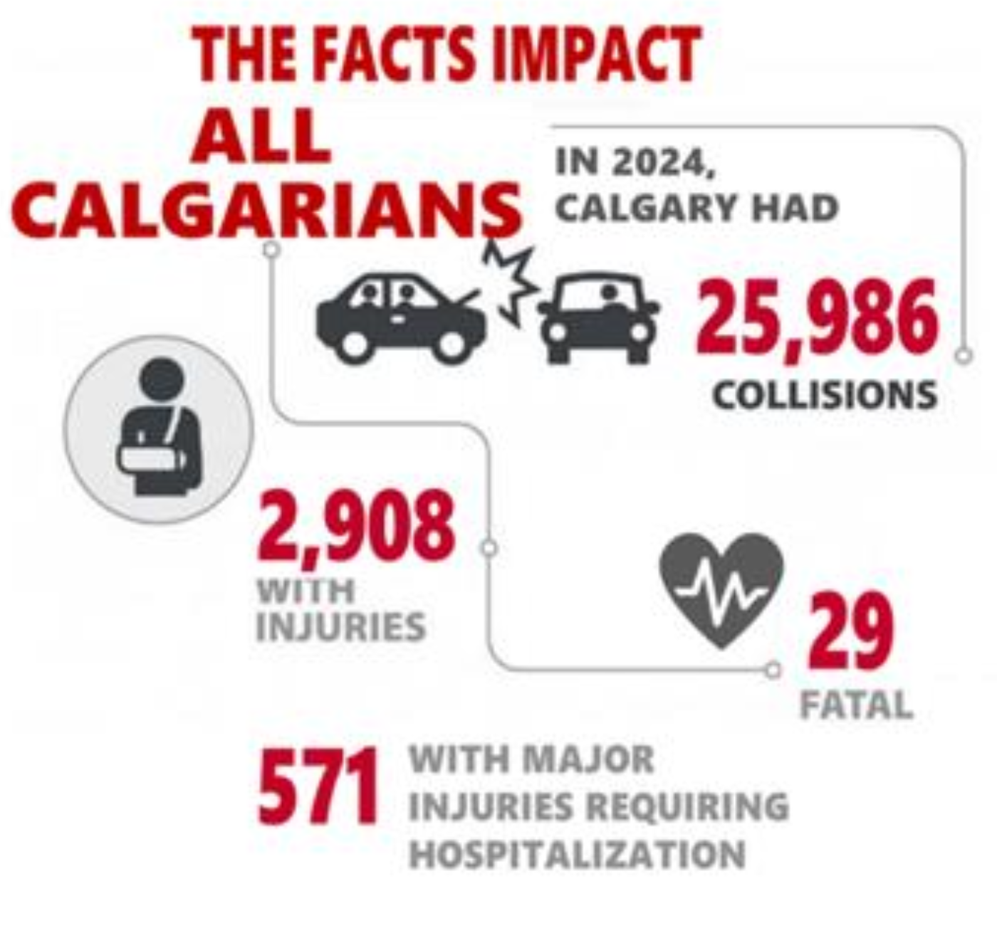 The estimated societal cost of collisions in Calgary was estimated to be $1.4-billion in 2024 according to the City of Calgary's Safer Mobility Plan 2025 Annual Report.