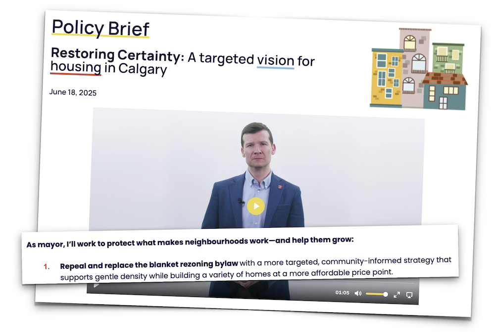 Mayor Farkas campaigned on repealing and replacing rezoning, but to date he has not provided Calgarians with a proposed path forward for “replacement” or how he intends to “support gentle density while building a variety of homes at a more affordable price point” as he promised in his election platform.